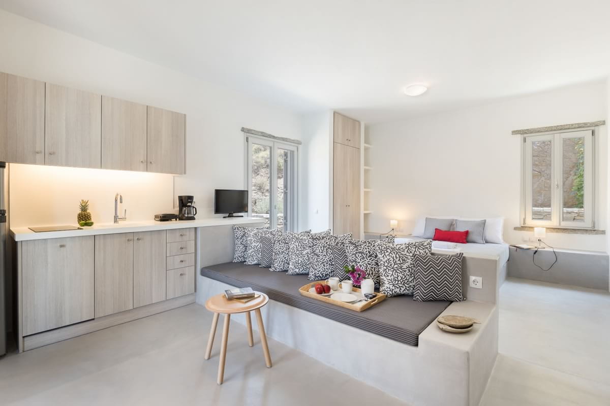 - A large living room with a fully equipped kitchen, a double bed and a bathroom